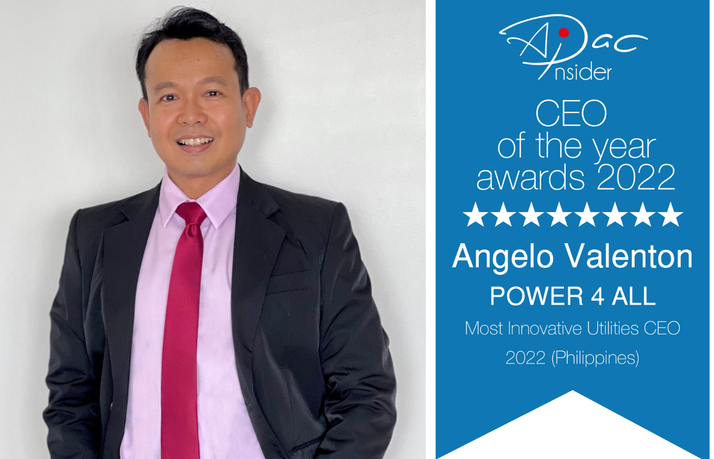 POWER 4 ALL founder Angelo Valenton was named Most Innovative Utilities CEO if the Year for his efforts to develop and provide access to cutting edge technologies for clean power and clean water among the most vulnerable and at-risk communities.