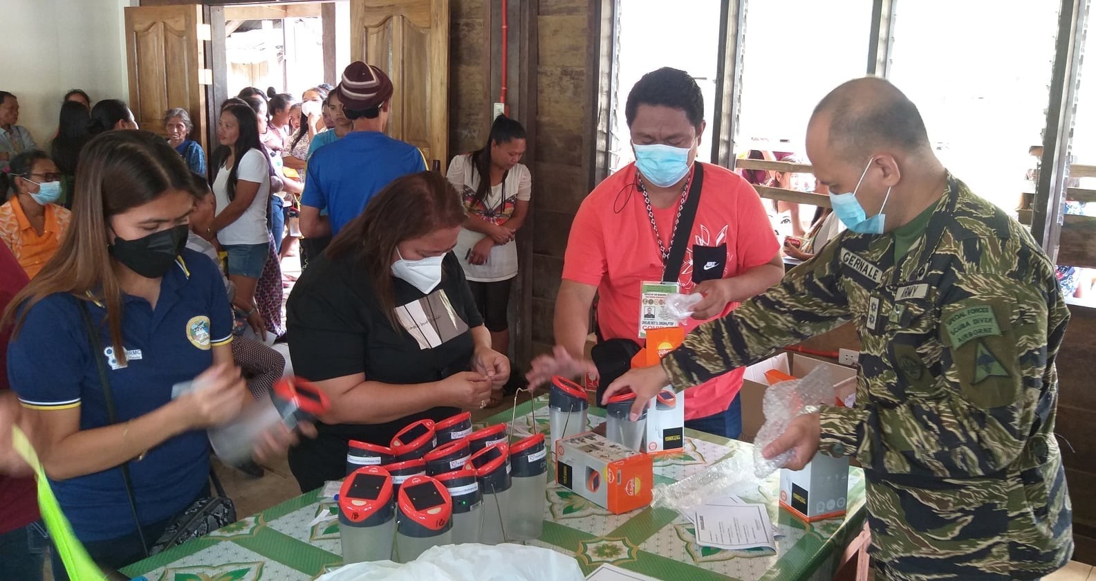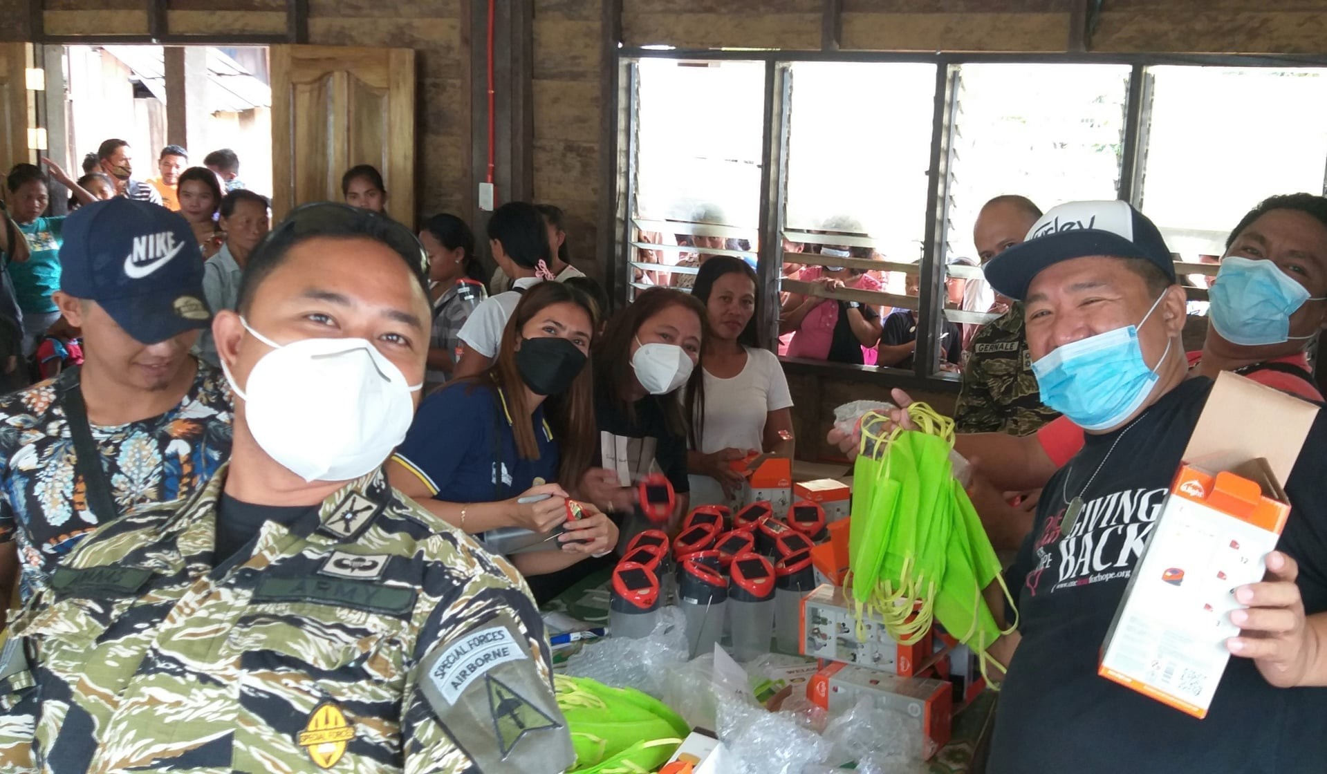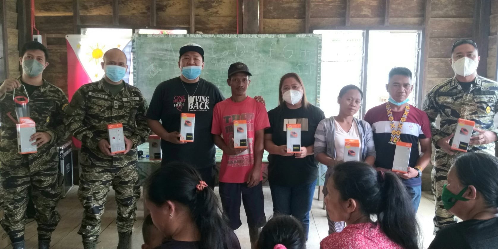 In as much as we wanted to reach out to the families in the upper areas of Brgy. Diatogon to hand over the solar lanterns personally, I was advised by the army not to proceed because of the danger. The day of the distribution was actually the anniversary of the NPA. The people were advised to come down and get their solars. Reusable or washable face masks were also distributed.