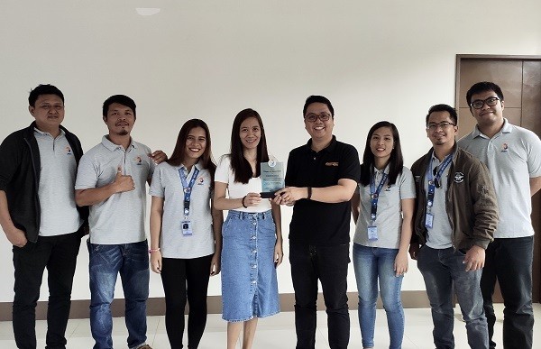 Receiving the award is Mark Tena from Power 4 All’s sales supervisor while giving the award is Charisma Lacosta, President of JMH Microfinance and pictured with them are Jose Ronaldo Perlado, Allan Loza, Jenimee Gruta, Leodel Bolaños, and Mark Andrew Pascua of KMH Microfinance.